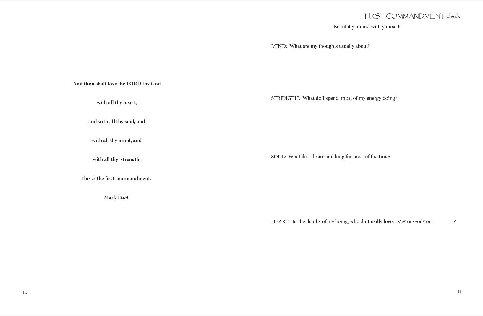 The commandments in this Journal are listed under the umbrella of what Jesus said are the Two Greatest Commandments. So our self examination begins with the first part of the Greatest Commandment in this verse: